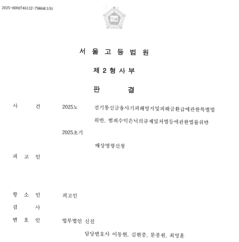 제1심 법원은 의뢰인(피고인)이 인출책 역할 및 자금세탁책 역할까지 하였다고 판단한 뒤, 피고인(의뢰인)에게 징역 4년을 선고하고 피해자들의 배상명령신청을 모두 인용하였습니다.