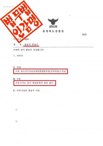 충청북도경찰청은 이 사건에 대해 다음과 같은 사유로 불송치 결정을 하였습니다.