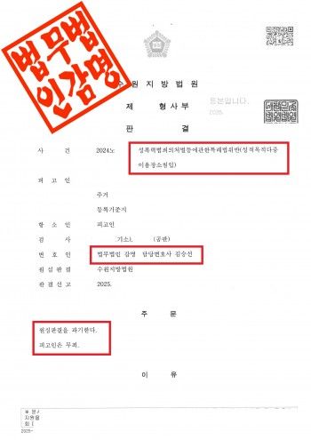 사건은 여러 차례 공판을 거치며 치열하게 다투어졌습니다. 사건 발생 후 약 2년이 흐른 항소심 선고일, 의뢰인은 성범죄 전문 변호사의 체계적이고 전문적인 조력을 바탕으로 마침내 무죄 판결을 받게 되었습니다.