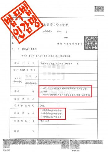 수원지방검찰청 여주지청은 이 사건에 대해 다음과 같은 사유로 불기소 결정을 하였습니다.