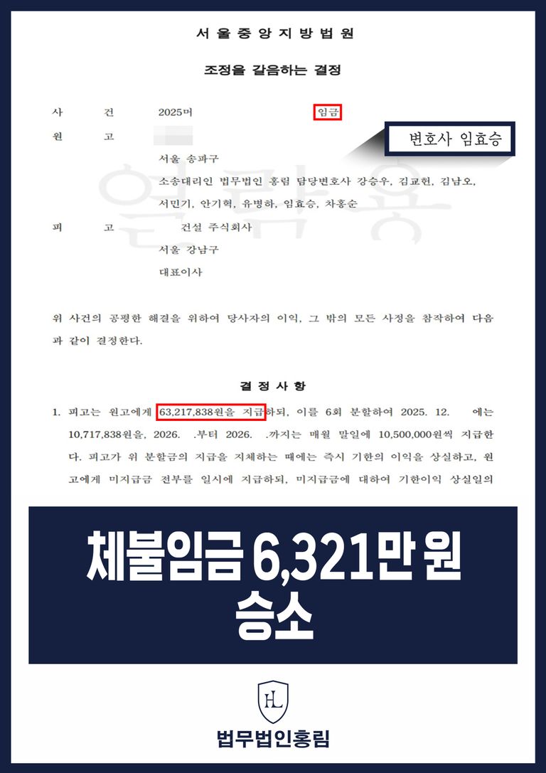 법무법인 홍림의 변호인은 의뢰인의 장기간 근속 사실과 미지급 채권의 명확성을 바탕으로, 신속하고 전부 승소를 목표로 하는 법률 전략을 수립하였습니다.