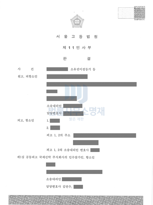 항소심 법원은 재감정을 통해 원심판결을 파기하고, 의뢰인 명의의 다가구주택에 대한 감정평가액을 7,000만원 증액하였습니다. 1심 법원에서 감정평가가 이루어진 경우 항소심 법원에서는 재감정을 하지 않는 통상적인 경우와는 다르게, 항소심 법원이 저의 변론을 인정해 준 것입니다.