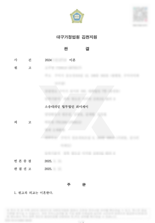 법무법인 YK 이혼 변호사의 조력으로, 법원은 의뢰인의 이혼청구를 전부 인용하였으며, 배우자와의 법적 혼인관계는 공시송달 방식으로 신속히 종료되었습니다. 의뢰인은 더 이상 배우자의 채무로 인해 불이익을 받지 않게 되었고, 자신의 명의로 된 아파트를 온전히 지킬 수 있는 여건을 확보하게 되었습니다.
