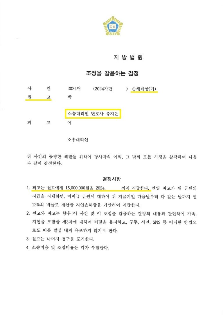 다행히 일주일 만에 증거보전 결정이 나와 증거를 확보할 수 있었고, 상간남이 아내가 유부녀인 것을 몰랐던 상황이었지만 비밀유지 조건으로 1,500만 원을 위자료로 받으며 성공적으로 마무리 된 사안입니다.