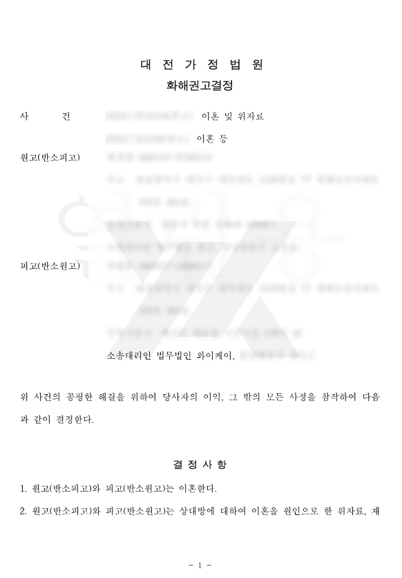 법무법인 YK의 조력으로, 재판부의 화해권고결정이 확정되어 사건이 종결되었습니다.