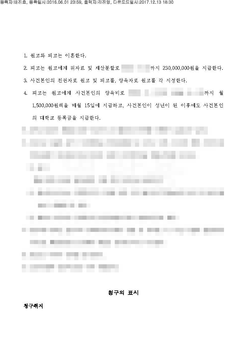 사건 개요 : 이 사건은 이혼사건으로 의뢰인인 원고과 피고가 이혼의 합의는 있으나 재산분할과 양육권등의 다툼이 있었던 사건입니다. 또한 피고는 해외에 거주중이므로 협의이혼이 불가능한 상태였습니다.