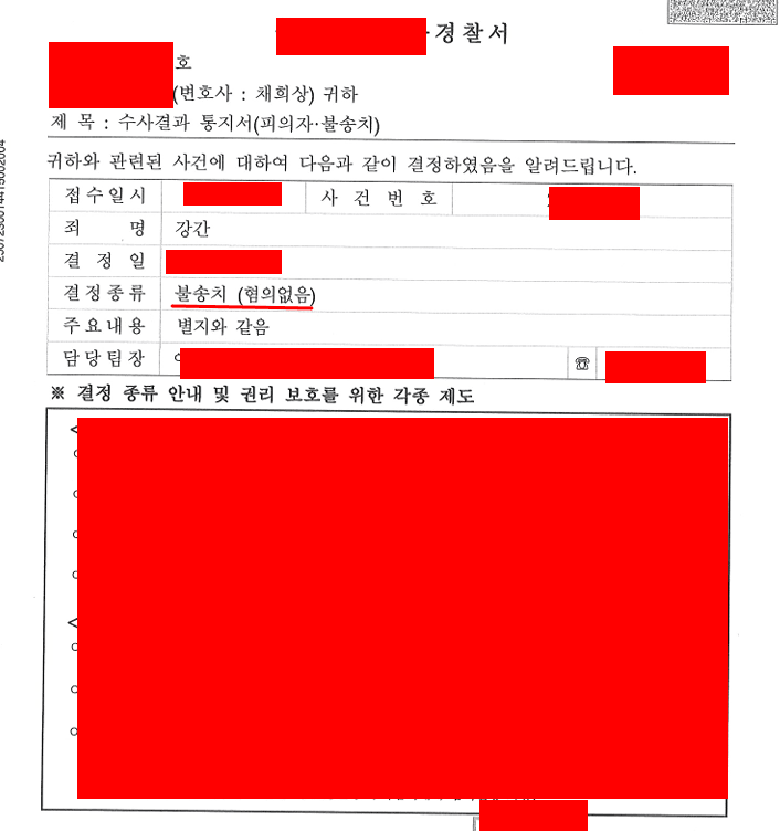 그 결과, 의뢰인은 ‘혐의없음(증거불충분)’으로 불송치 결정을 받고 억울한 혐의를 벗고 일상으로 돌아갈 수 있었습니다.
