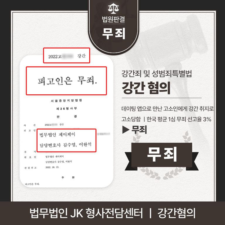 ![[형사전담센터] 강간죄 및 성범죄특별법 무죄](/_next/image?url=https%3A%2F%2Fd2ai3ajp99ywjy.cloudfront.net%2Fuploads%2Ftitleimage%2Foriginal%2F5c4803ba9773c067aaf5b09a-original.jpg&w=3840&q=75)