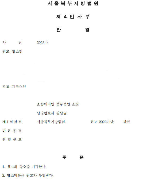 이에 원고는 1심 판결에 불복하여 항소를 제기하였습니다.
