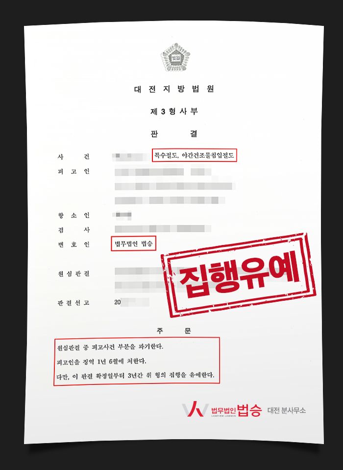 저 박은국 대전형사전문변호사를 찾으신 의뢰인 A 역시 야간건조물침입절도죄로 동일한 상황에 처해 있었습니다. 그래서 [법무법인 법승]에서는 무엇보다 유예 기간을 도과하여 징역형의 부활을 방지하는 데 집중했지요.