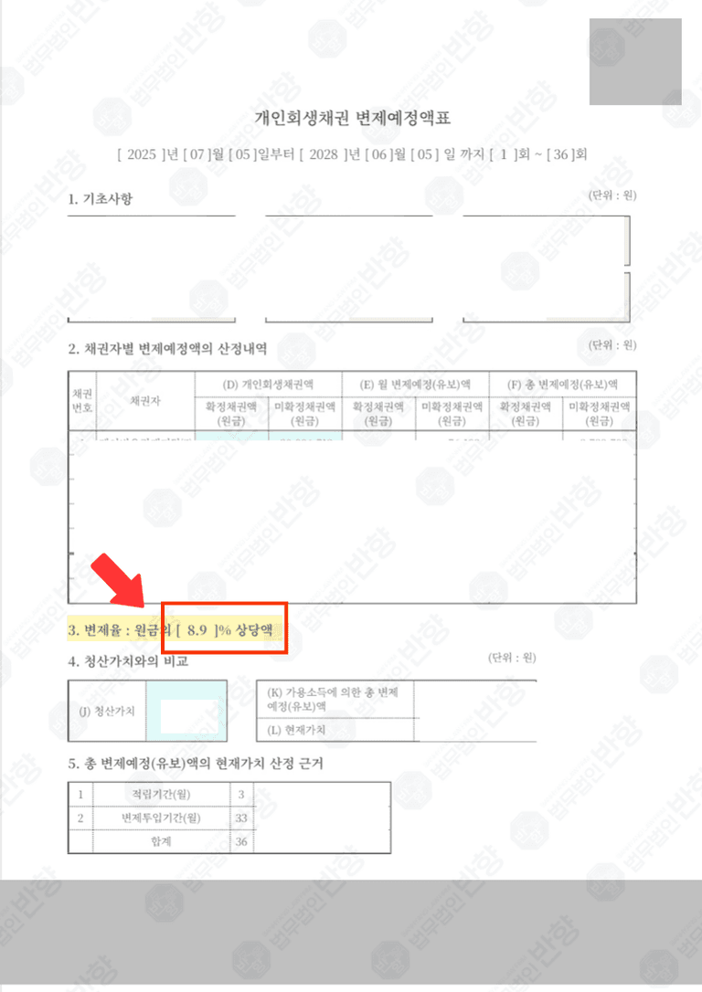 이를 통해 변제율 8.9% = 탕감률 91.1%임을 명확히 증명했습니다.