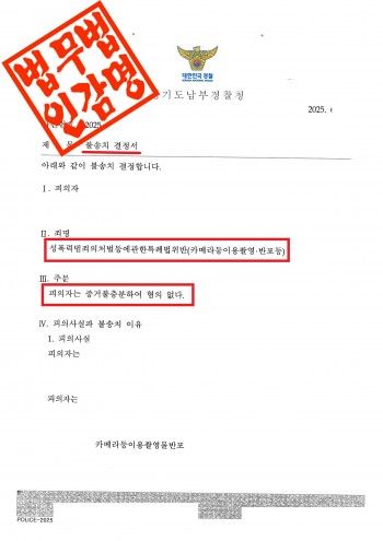 ○ 피의자의 휴대전화와 디지털 기기를 디지털포렌식 진행하였으나 본 건 혐의 관련된 자료는 확인되지 않는 점, (중략), 피의자가 촬영물을 유포했을 것으로 의심된다는 피해자 진술 외 달리 피의자의 카메라등이용촬영반포 혐의에 대한 입증이 불충분하다고 판단된다.
