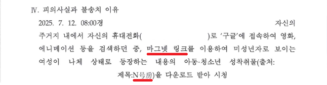 장교 A씨는 2025. 7. 12. 08:00경 구글로 영화, 에니메이션 등을 다운받다가 마그넷 링크로 무엇인가 다운받았는데 'N号房' 시드파일이었습니다.