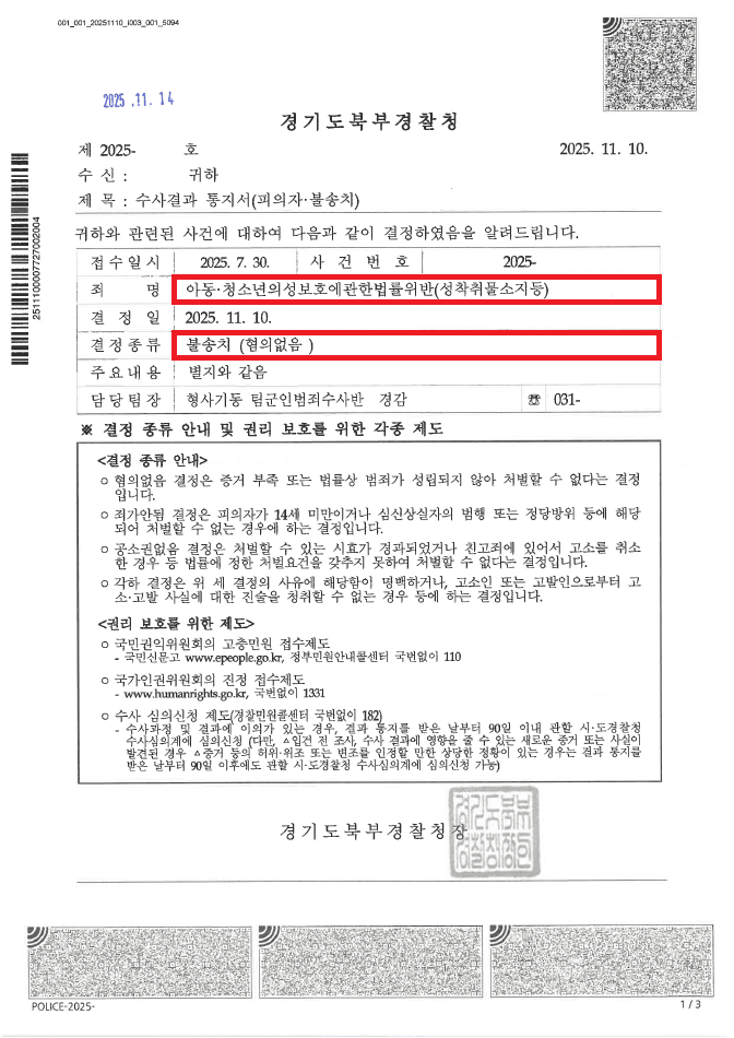 ④ 경찰 조사를 받은 후 A씨에게는 'N번방' 성착취물에 대한 고의가 전혀 없었다는 내용의 변호인의견서를 작성하여 제출하였습니다.