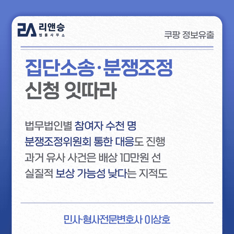 쿠팡 집단소송 역시 재산상 손해 입증이 어려워 동일 수준의 보상 가능성이 높습니다.