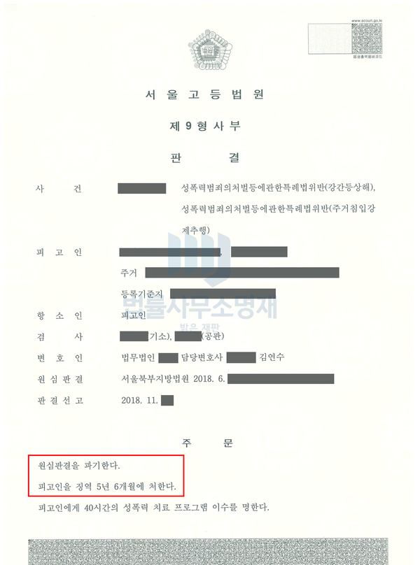 (4) 의뢰인은 2명을 추행하고 1명을 강간한 직후 스스로 인근 파출소를 찾아가 휴대전화 분실신고를 했다는 점 등을 고려하였을 때, 의뢰인의 주장이 단지 형사처벌을 피하기 위한 변명이 아니라 진실일 수 있겠다는 생각이 들어 법리적인 변론에 중점을 두고, 범죄사실은 인정하면서도 최대한 양형을 낮추기 위한 노력을 기울였습니다.