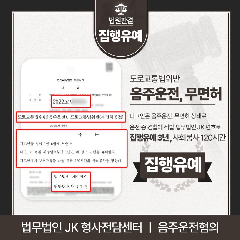 음주운전과 무면허 운전은 도로교통법에서 가장 무겁게 다루는 범죄로, 반복 여부나 사고 발생 여부에 따라 실형 선고 가능성까지 열려 있습니다. 이번 사건은 음주 상태에서 무면허 운전을 하다 적발된 사건으로, 정상 참작 요소를 면밀하게 구성해 집행유예를 이끌어낸 사례입니다.