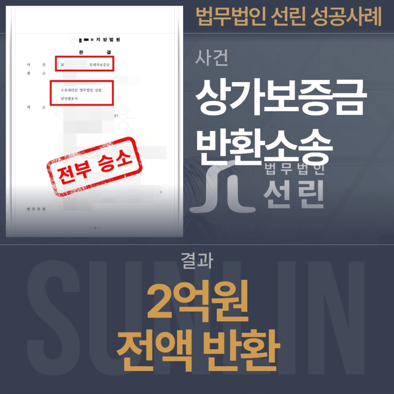 상가보증금반환소송 → 결과 : ‘2억원’ 전액 반환 판결