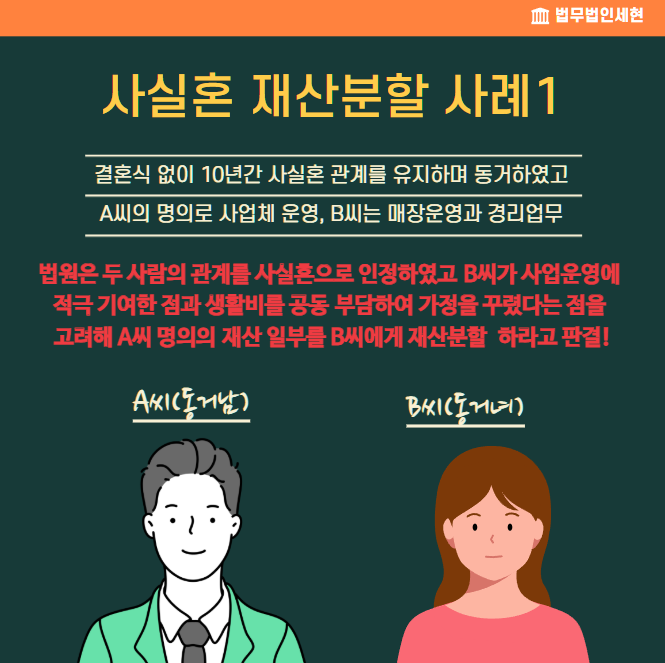 결혼식없이 10년간 사실혼 관계를 유지하면 동거하였고, A씨 명의로 사업체 운영, B씨는 매장운영과 경리업무를