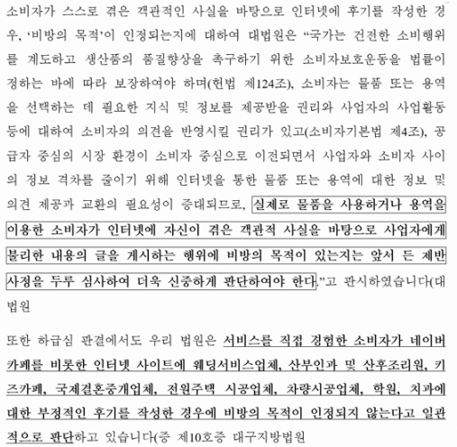 이 기준은 많은 네이버 리뷰 명예훼손 고소 사건에서 무혐의를 이끌어낸 핵심 이유였습니다.