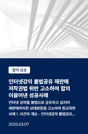 의뢰인께서는 상대방이 제공하는 모 인터넷 강의를 구매한 뒤 이를 지인과 공유하였고,