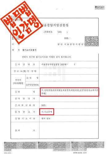 이처럼 사건을 신속하고 체계적으로 처리해 나간 법무법인 감명의 성범죄 전담팀은, 무거운 처벌이 예상될 수 있던 사건임에도 불구하고 의뢰인이 무사히 기소유예 처분을 받을 수 있도록 도울 수 있었습니다.