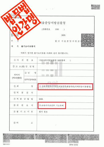 서울남부지방검찰청은 이 사건에 대해 다음과 같은 사유로 불기소 결정을 하였습니다.