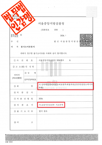 서울중앙지방검찰청은 이 사건에 대해 다음과 같은 사유로 불기소 결정을 하였습니다.