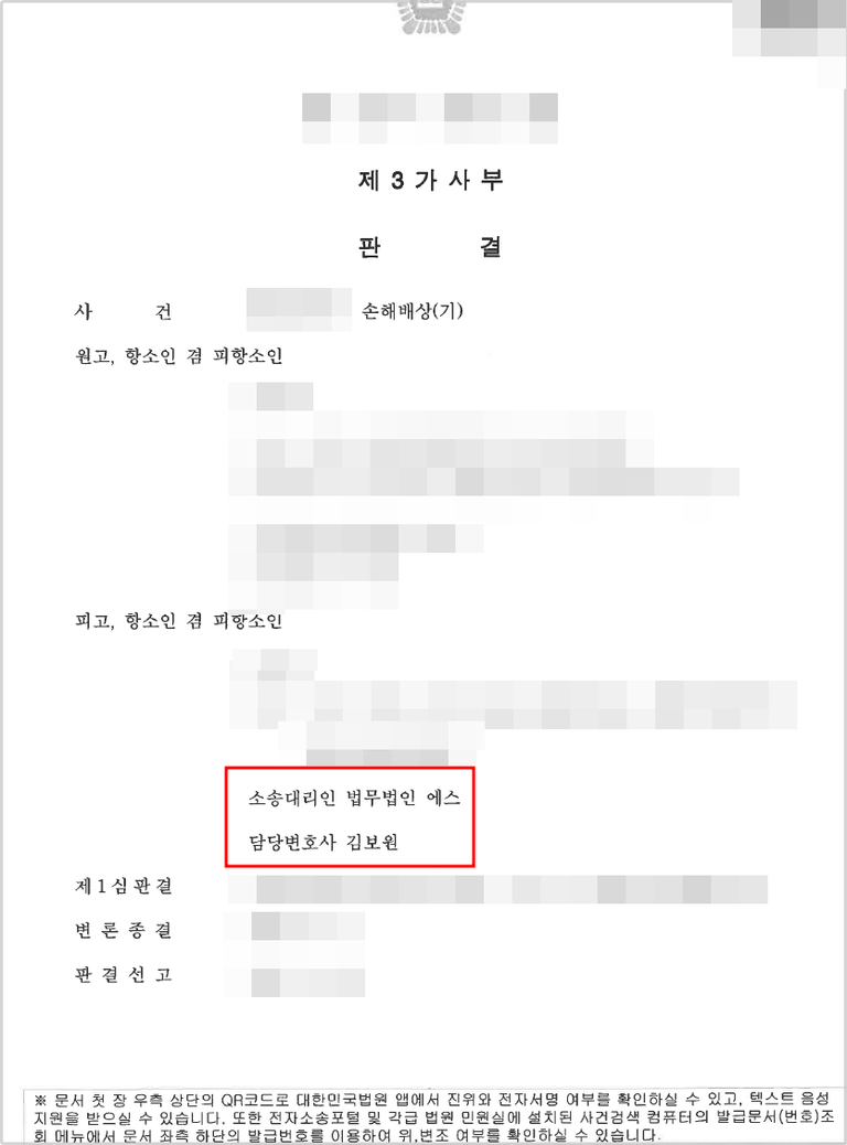 하지만, 원고는 이를 받아들이지 못하고 끝까지 항소를 진행하였고, 저희 주장이 모두 받아들여져 원고의 항소가 기각되었습니다.