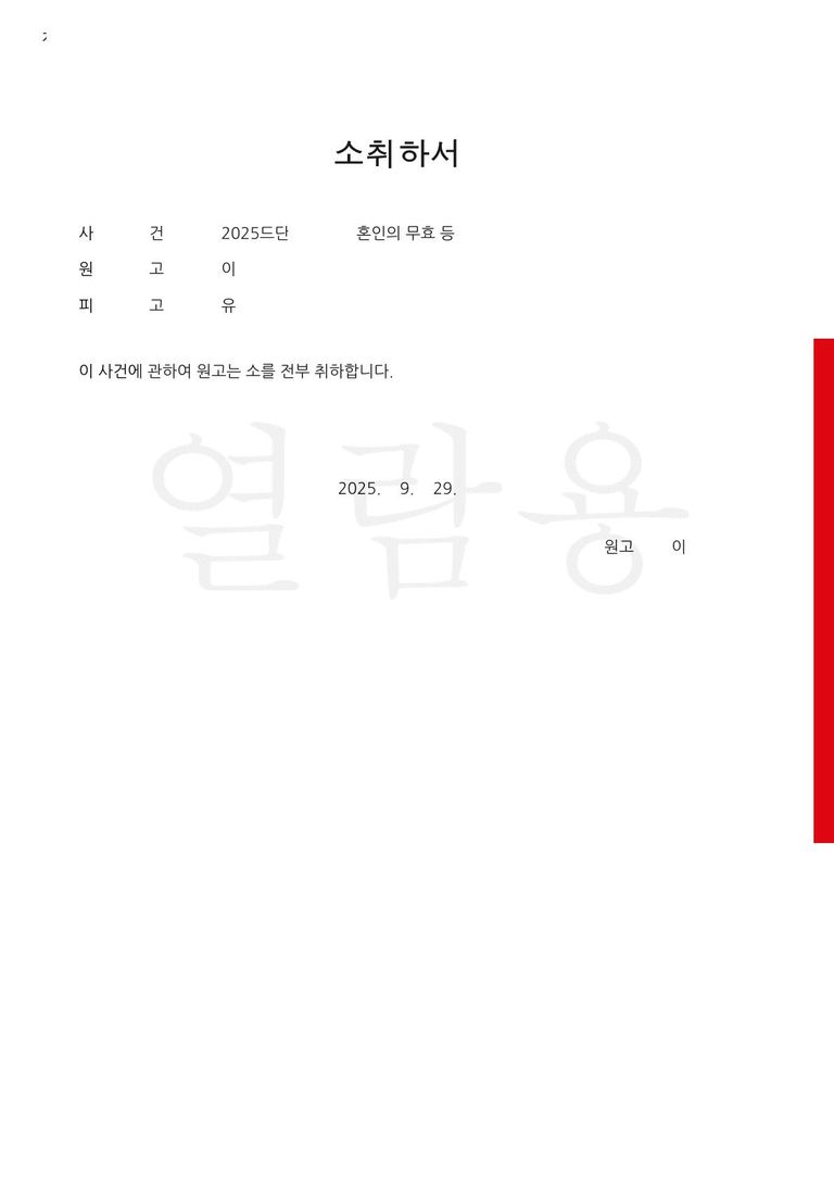 이에 원고는 이길 수 없겠다고 판단하였는 지,