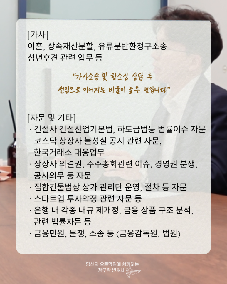 정우람 변호사에게 문의하세요. 감사합니다.