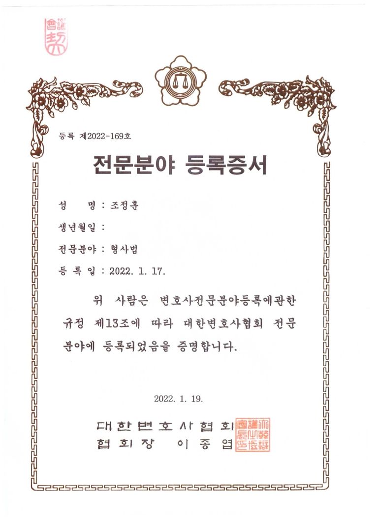 어려움 속에서 희망을 찾아드리는 형사법・이혼 전문 조정훈 변호사입니다.