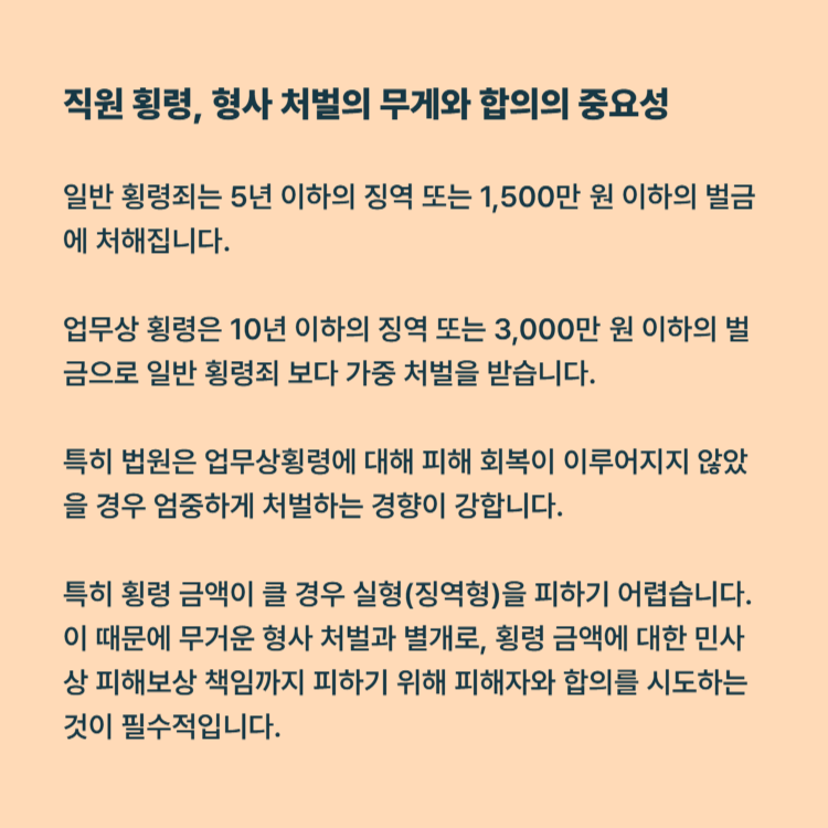 직원 횡령, 형사 처벌의 무게와 합의의 중요성