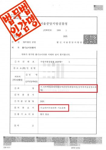 - 보호관찰소에서 실시하는 성폭력 재벌방지 교육프로그램을 이수할 것을 조건으로 기소를 유예한다.
