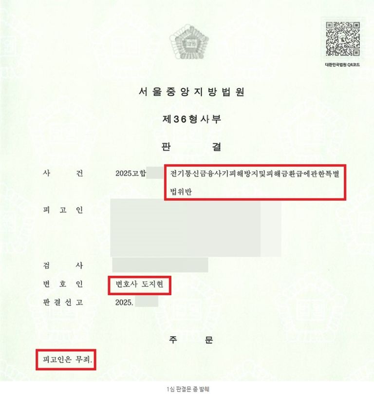 이번 포스팅 내용은 저희 로펌에서 담당했던 사건 중 부동산 임장 아르바이트를 하다가 수표를 수거하여 보이스피싱 사건에 연루되어 1심에서 무죄를 받았지만, 검사가 다시 항소하여 항소심에서 재차 무죄를 얻어낸 사건입니다.
