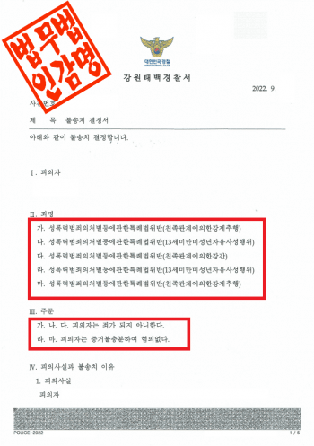 강원태백경찰서는 이 사건에 대해 다음과 같은 사유로 불송치 결정을 하였습니다.