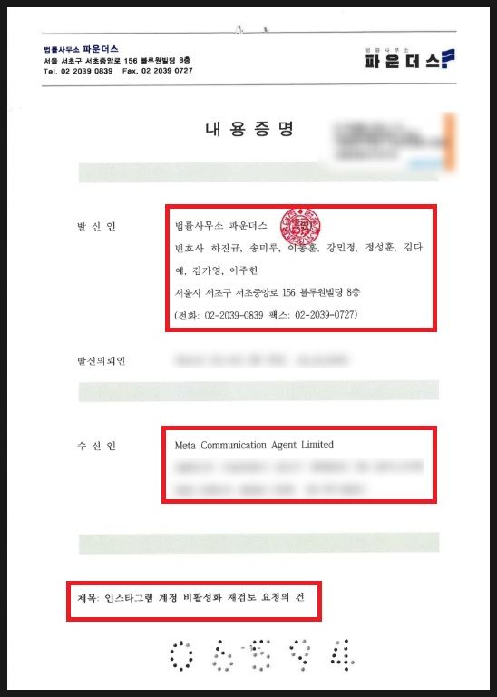 하지만 저희 법률사무소 파운더스를 통해 '내용증명'을 발송하게 되면 메타 측 법률대리인에 바로 접수되기에 상대방이 곧바로 공식적인 대응에 나섭니다.