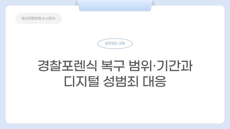 이처럼 디지털포렌식은 단순한 기술적 절차가 아니라 사건 전반을 해석하고 구성하는 데 결정적인 역할을 하므로, 피의자 입장에서는 초기부터 이 절차의 특성과 영향을 정확히 이해하고 대응하는 것이 중요합니다.