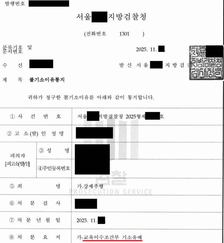 결국 의뢰인은 검찰에서 교육조건부 기소유예 처분을 받게 되었습니다.