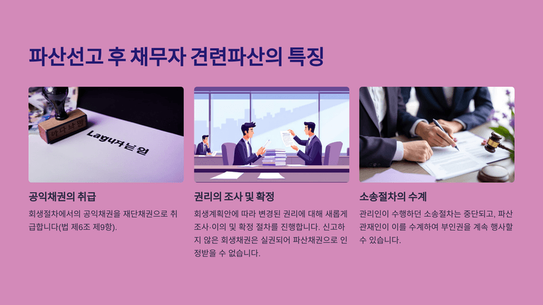 채무자회생법은 파산보다 회생을 우선하지만, 진행 중인 회생절차가 실패하면 법원이 파산을 선고하는데 이를 견련파산이라 한다. 견련파산인지 통상의 파산인지에 따라 공익채권·재단채권의 범위, 채권조사·확정 방식, 상계권 및 부인권의 기준시점 등 여러 법률관계가 달라진다.
