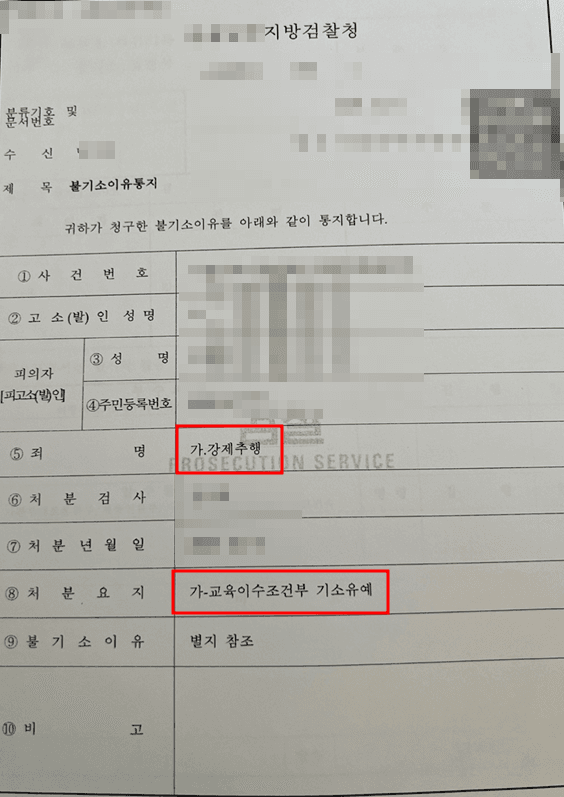 (※ 조건부 기소유예란 교육 이수와 같은 조건을 이행하면 기소유예를 받을 수 있는 제도입니다)