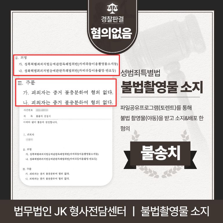 ![[형사전담센터]불법 촬영물 소지 불송치](/_next/image?url=https%3A%2F%2Fd2ai3ajp99ywjy.cloudfront.net%2Fuploads%2Ftitleimage%2Foriginal%2F5bdc3056fa29b911efef28a5-original.jpg&w=3840&q=75)