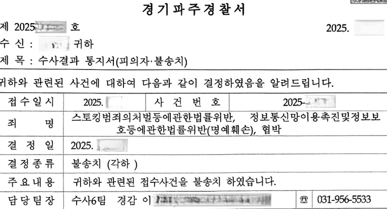 고소인의 정식 고소 취하가 이루어짐에 따라, 수사기관은 더 이상의 수사 필요성이 없다고 판단하였고, 사건은 피의자조사 없이 불송치(각하)로 신속히 종결되었습니다.