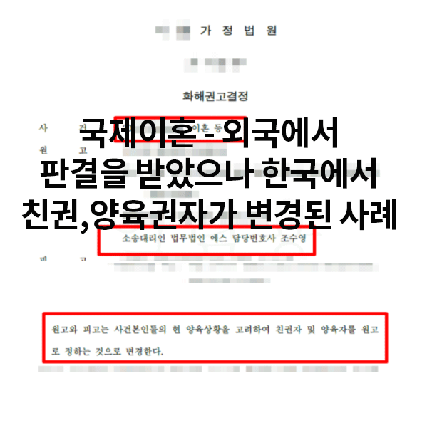 최근 국제이혼 관련 문의가 많아지고 있는데요. 오늘은 국제이혼사건에서 외국에서 판결을 받았으나 한국에서 친권,양육권자가 변경된 사례를 소개해드리겠습니다.