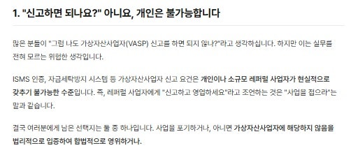 많은 분들이 "그럼 나도 가상자산사업자 신고를 하고 떳떳하게 하면 되지 않나?" 라고 반문하십니다.