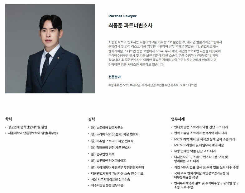 뉴로이어 법률사무소 최동준 파트너변호사입니다.