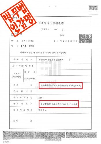 서울중앙지방검찰청은 이 사건에 대해 다음과 같은 사유로 불기소 결정을 하였습니다.
