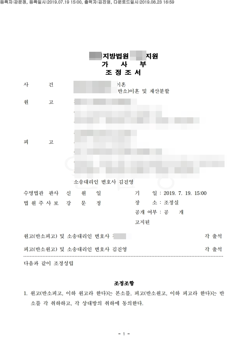 결과 : 저희 법률사무소에서 소송을 진행하였으며 법원에서 조정에 회부하였으며, 저희 대표변호사인 김진영변호사님께서 조정을 잘 이끌어 내어 양측모두 소송을 취하하는 것으로 마무리지게 되었습니다. 결과적으로는 이혼이 성립되지 않았으므로 승소하게된 사건입니다.