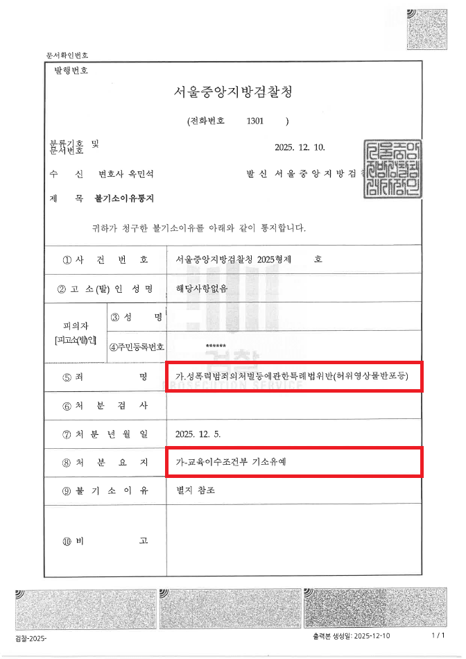 이러한 저의 조력을 바탕으로 A씨는 딥페이크를 제작이나 유포를 하나만 하지 않고 모두 다 하였음에도 불구하고 '기소유예' 처분을 받음으로써 성범죄 전과자가 될 위기에서 벗어날 수 있었습니다.