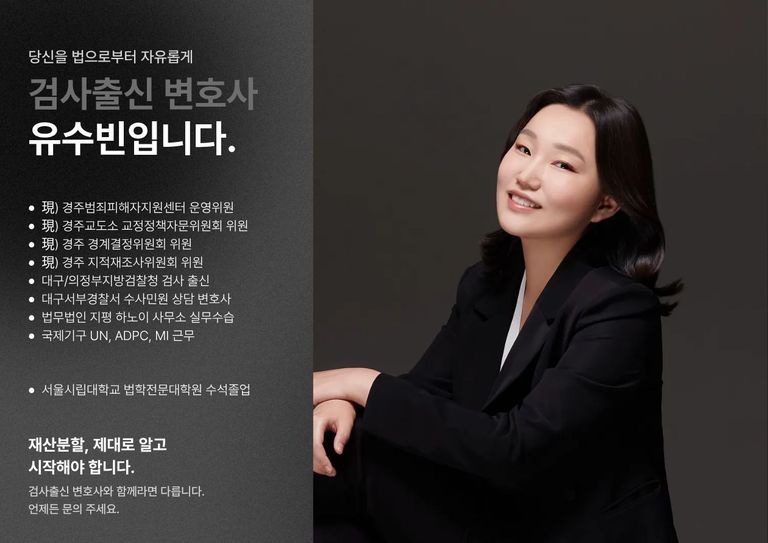 안녕하세요. 검사출신여성변호사 대구에서 활동하는 유수빈 변호사입니다.
